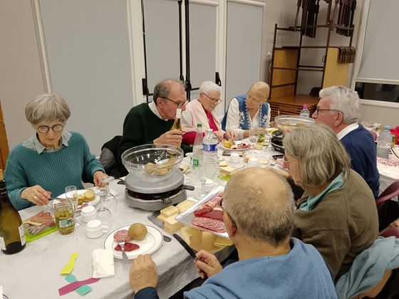 Accueil apéritif puis dîner raclette "tirée du sac" entre Blossevillais et leurs invités.